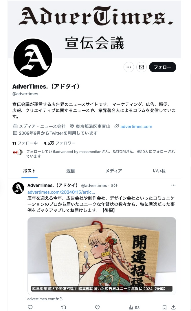 宣伝会議AdverTimes.(アドタイ)の年賀状紹介に掲載されました。