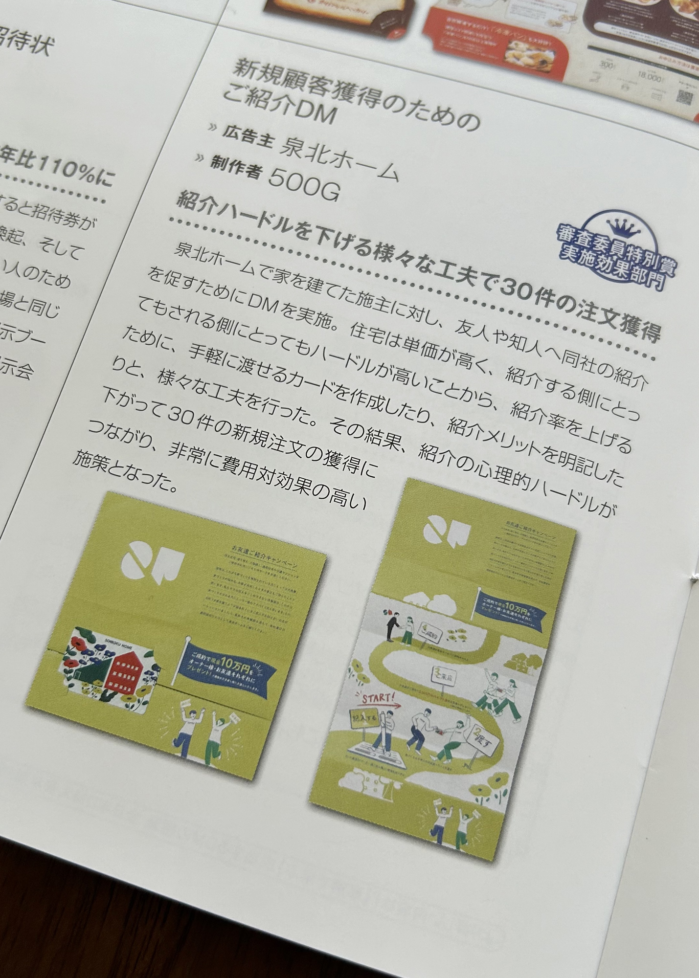 泉北ホーム様のデザインと弊社のアイデアが形になった新規顧客獲得のためのご紹介DMは非常に費用対効果の高い施策となりました。