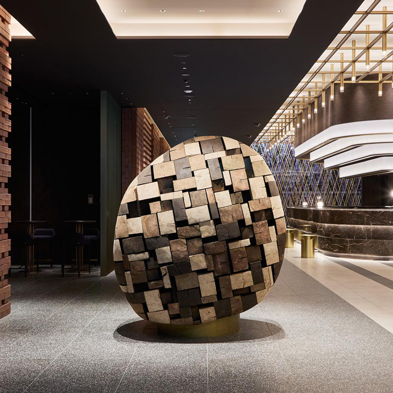 世界的ホテルチェーンや大手デベロッパーとの取引実績もあり、アートの企画・提案から作品の制作・設置まで一貫して手掛けられています。